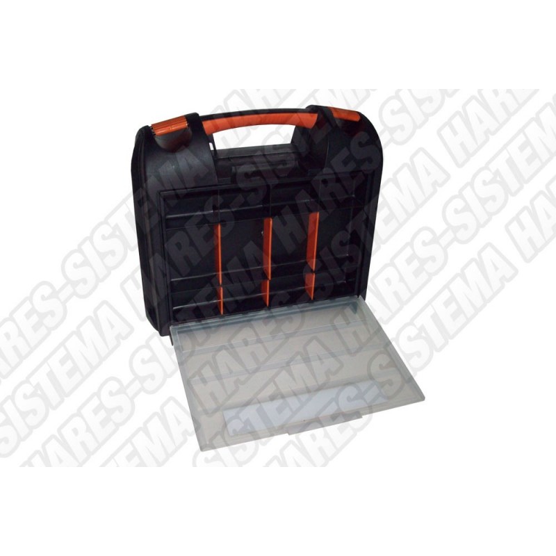 Caja porta taladro, organizador con divisiones removibles.