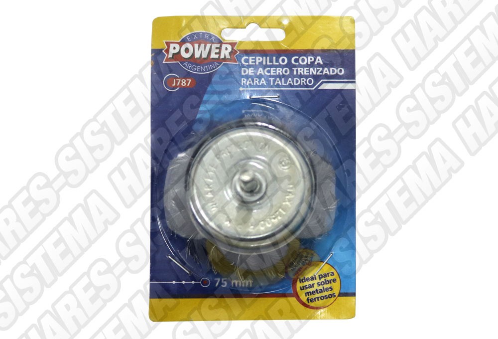 Cepillo copa Acero Trenzado para Taladro 75mm Extra Power